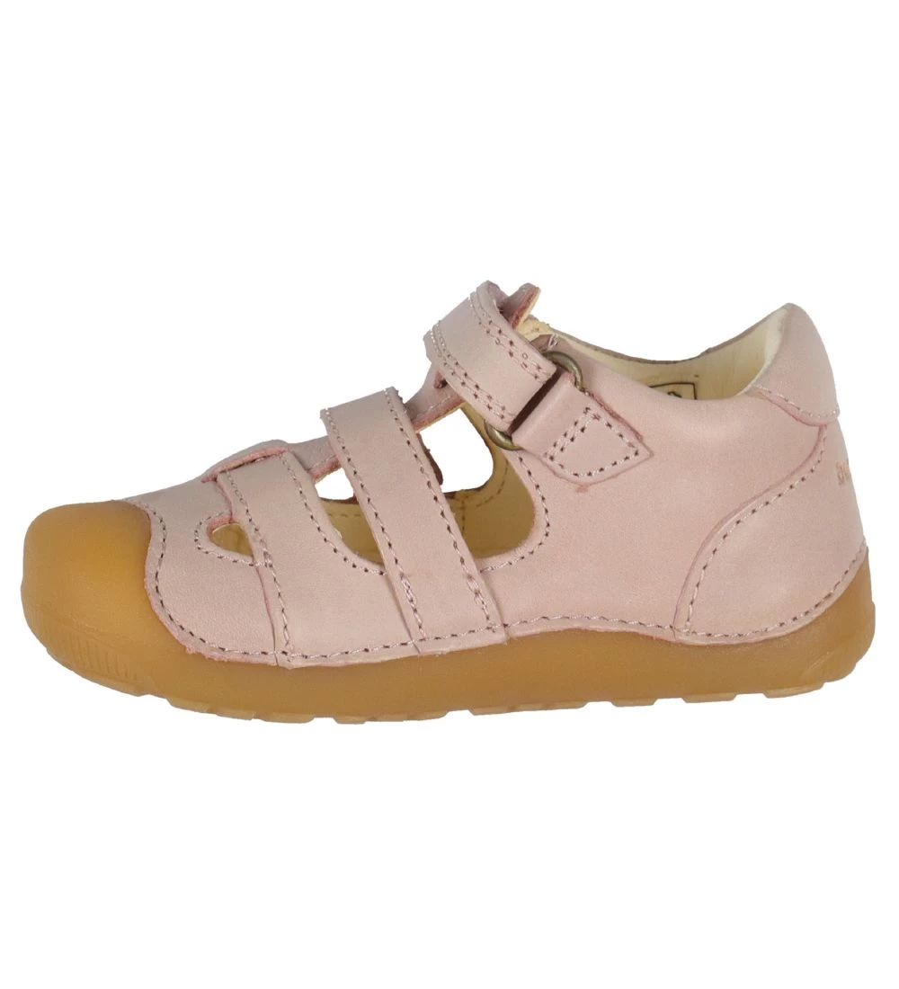 Flotte Bundgaard begyndersandaler i rosa læder med flotte syningsdetaljer.
