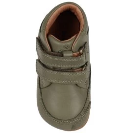 Lækre Bundgaard begyndersko i armygrøn læder med flotte syningsdetaljer. På pløsen og hælkappen er der et Bundgaard logo.