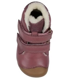 Smarte Bundgaard begyndersko i mørkerosa med dekorative syninger samt den klassiske Bundgaard-kanin præget på pløsens top.