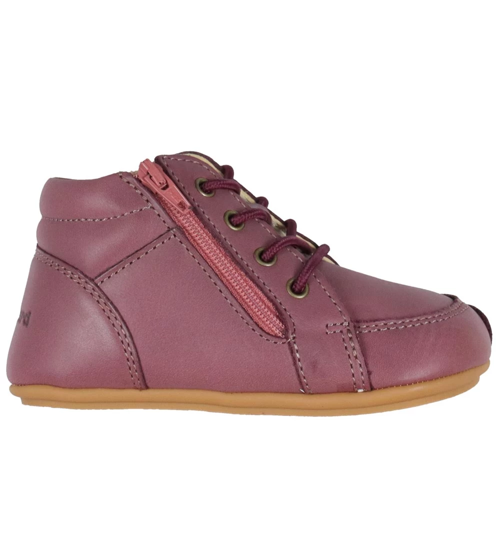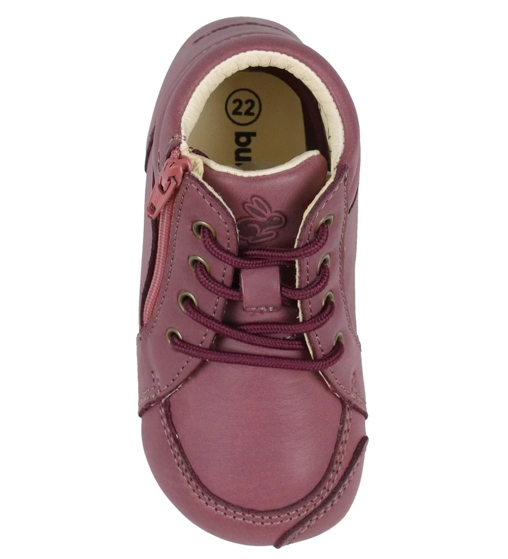 Yndige Bundgaard begyndersko i mørk rosa læder med flotte syningsdetaljer. På pløsen er der indpræget en sød kanin.