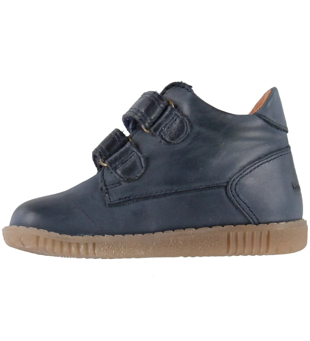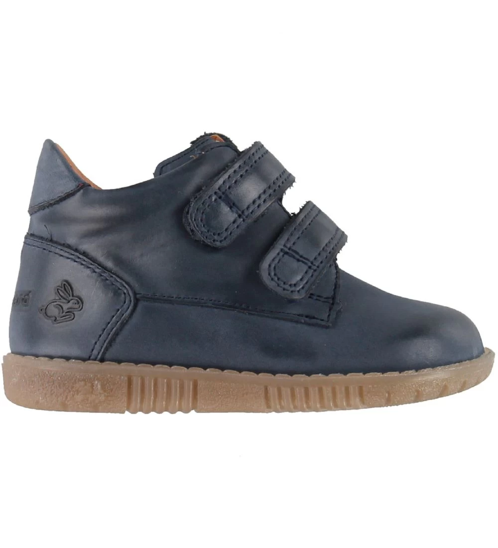 Skønne Bundgaard begyndersko i navy læder med en lille, indpræget kanin tæt ved hælen..