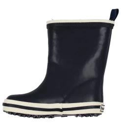 Fede Bundgaard gummistøvler i ensfarvet navy. På hælen og øverst på skaftet er der på ydersiden et hvidt mærke med navnet “Bundgaard”. Skaftet har en smal, hvid kant, og hele vejen rundt om sålen er der en hvid stribe med en smal, navy stribe i midten.