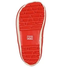 Fine Bundgaard gummistøvler i ensfarvet rød. På hælen og øverst på skaftet er der på ydersiden et hvidt mærke med navnet “Bundgaard”. Skaftet har en smal, hvid kant, og hele vejen rundt om sålen er der en hvid stribe med en smal, rød stribe i midten.
