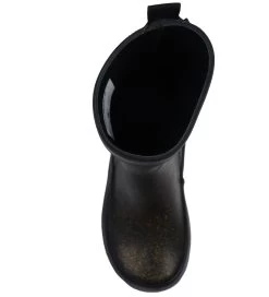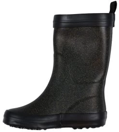 Lækre Bundgaard gummistøvler i sort med glimmer. Øverst på skaftet er der på ydersiden et sort mærke med navnet “Bundgaard”.
