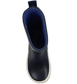 Lækre Bundgaard gummistøvler i ensfarvet navy. Øverst på skaftet er der på ydersiden et sort mærke med navnet “Bundgaard”. Skaftet har en smal, hvid kant i toppen, og hele vejen rundt om sålen er der to brede, hvide kanter.