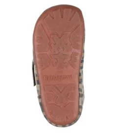 Bundgaard skindfutterne går op til anklen og lukkes med en bred velcrolukning over vristen. Indvendigt er der blødt skind, som former sig efter fødderne, og i åbningen er der en let polstring.