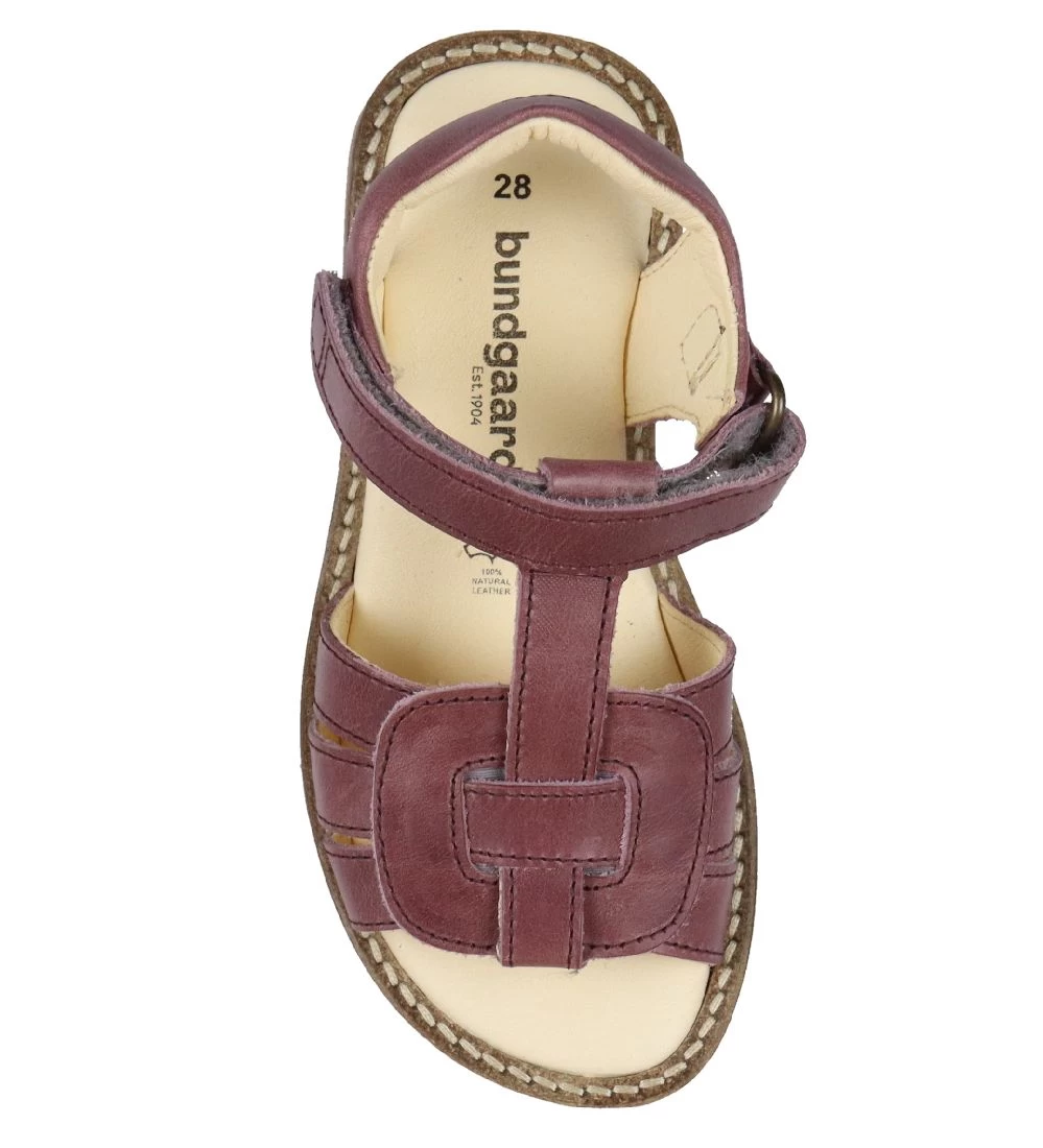 Bundgaard sandalerne er i en åben model, som åbnes med praktiske velcroremme over foden og vristen. Der er en smal strop omkring hælen, så de sidder godt fast på foden og indvendigt er der glat skind på indersiden af stropperne. Indersålen er i en blød læderkvalitet og ydersålen er brun, med et praktisk mønster under bunden som sikrer et godt fodfæste.