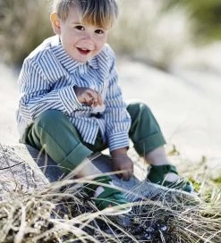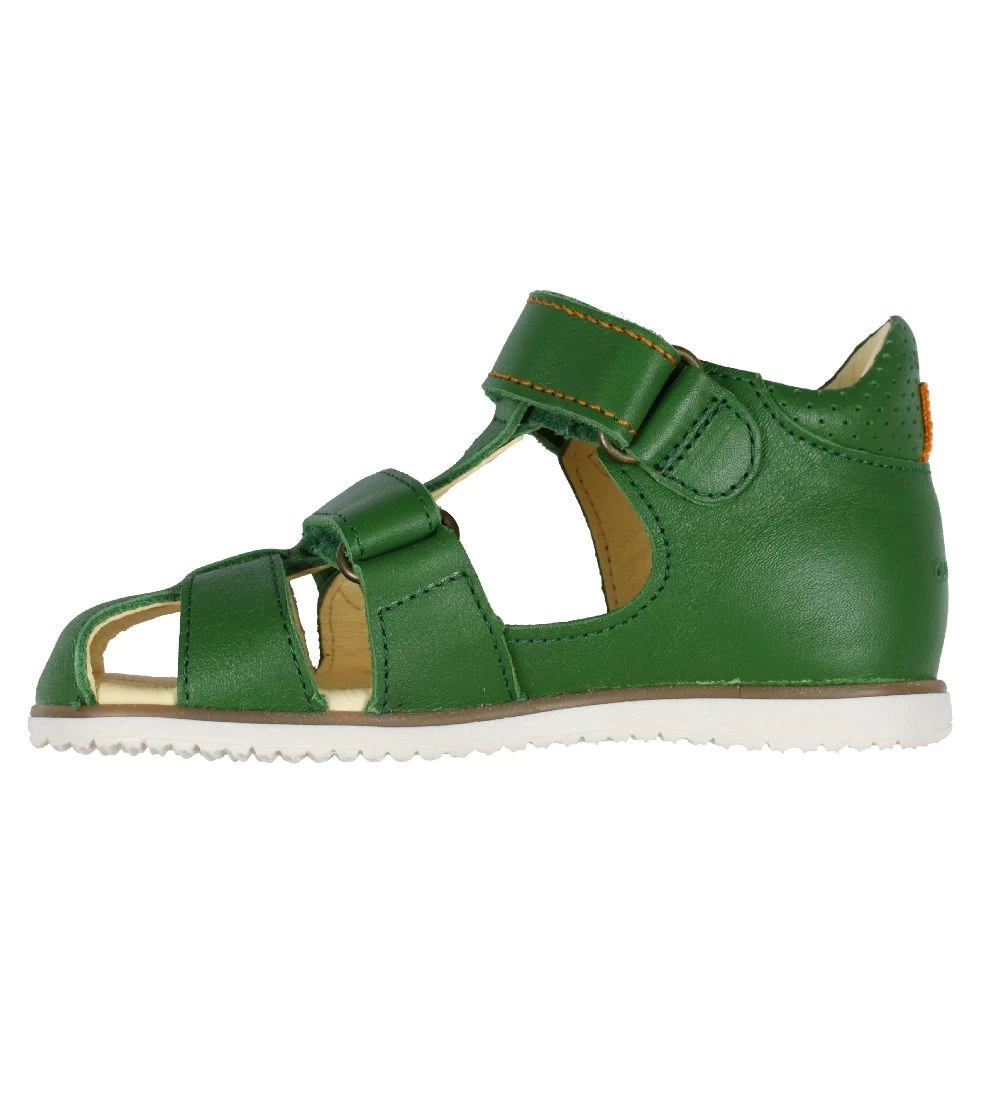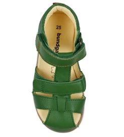 Bundgaard sandalerne er i en praktisk, lukket model med hæl. Sandalerne åbnes med en velcrorem over foden samt ved anklen, så det er let for barnet selv at tilpasse dem til fødderne. På indersiden er de beklædt med blødt skind, og i bunden er der en blød indersål af læder.