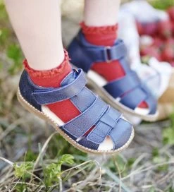 Sandalerne er i en lukket model og lukkes med tre velcroremme. Indvendigt er der en beklædning af læder samt en god lædersål i bunden.