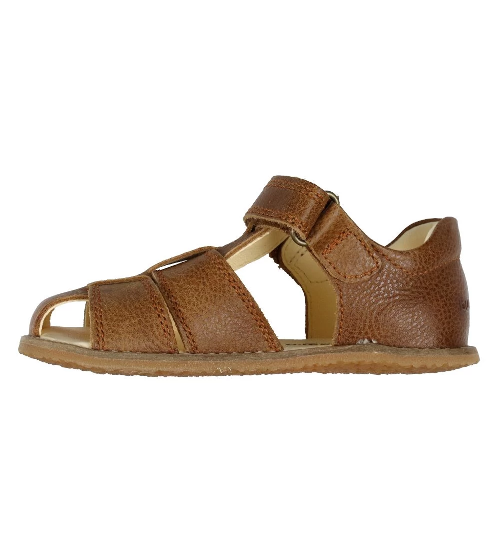 Bundgaard sandalerne er i en lukket model, og de lukkes med praktiske velcroremme over forfoden og ved vristen, for let og hurtig tilpasning. Indvendigt er de beklædt med blødt skind, og i bunden er der en blød indersål af læder.