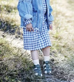 Smarte Bundgaard sandaler i armygrønt skind. På hælen er “bundgaard” og den velkendte kanin præget ind i læderet.