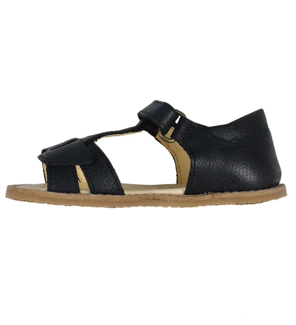 Søde Bundgaard sandaler i sort skind, med flotte flapper over foden.