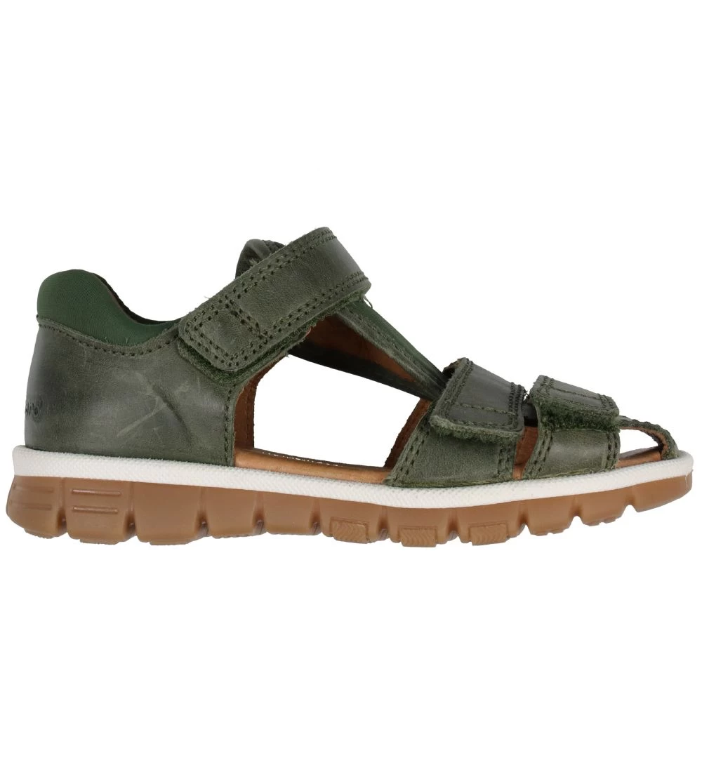 Flotte Bundgaard sandaler i armygrøn læder og tekstil.
