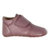 Hjemmeskoen går op til anklen og lukkes med en bred velcrolukning over vristen. Indvendigt er der blødt skind som former sig efter fødderne, og i åbningen er der en let polstring.