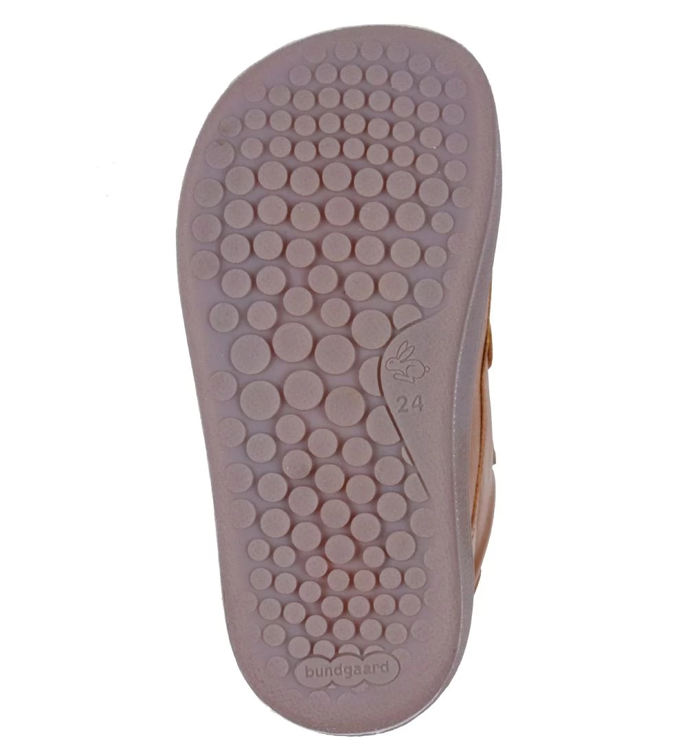 Bundgaard skoene lukkes over vristen med to velcroremme, så de bedst muligt tilpasses barnets fod. Skoene har en fast hælkappe, og de er godt polstrede i åbningen. Indvendigt er de forede med tekstil, og i bunden er der en udtagelig indersål med for på. Skoene har en tex-membran, som gør at de holder vandtætte.