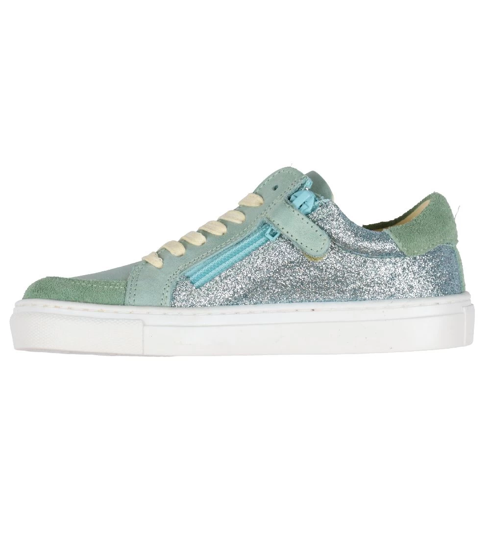 Yndige Bundgaard sko i blå skind med ruskinds detaljer og glimmer på begge sider. På pløsen er “bundgaard” trykt ind i skindet.