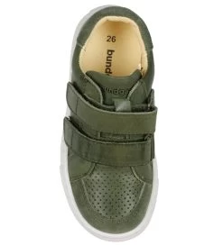 Yndige Bundgaard sko i armygrøn skind og ruskinds detaljer. På pløsen er “bundgaard” trykt ind i skindet.