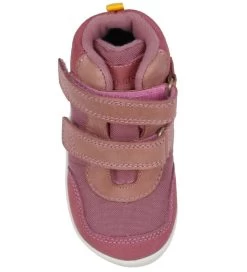 Flotte Bundgaard støvler i rosa tekstil og ruskind. Støvlerne har et Bundgaard logo præget ind i ruskindet på hælen og en orange hælstrop.