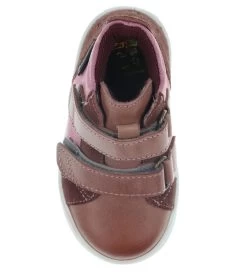 Seje Bundgaard støvler af skind og tekstil i rosa nuancer. På hælen er “bundgaard” trykt ind i skindet.