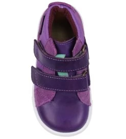 Fine Bundgaard støvler af skind og tekstil i lilla. På hælen er “bundgaard” trykt ind i skindet.