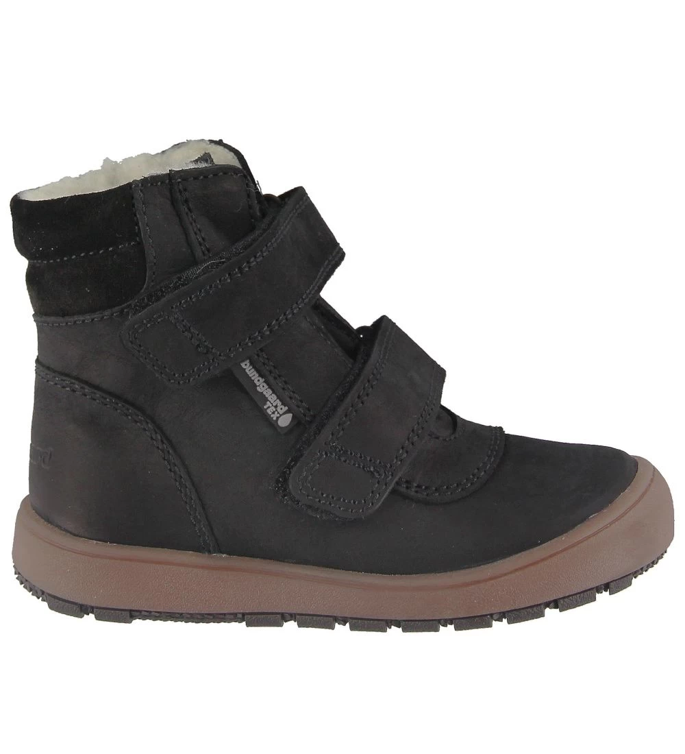 Lækre Bundgaard vinterstøvler i sort skind. Bagtil er der ruskind, og på hælkappen er “bundgaard” trykt ind i skindet.