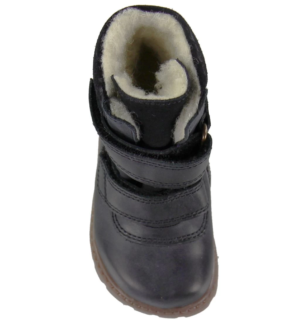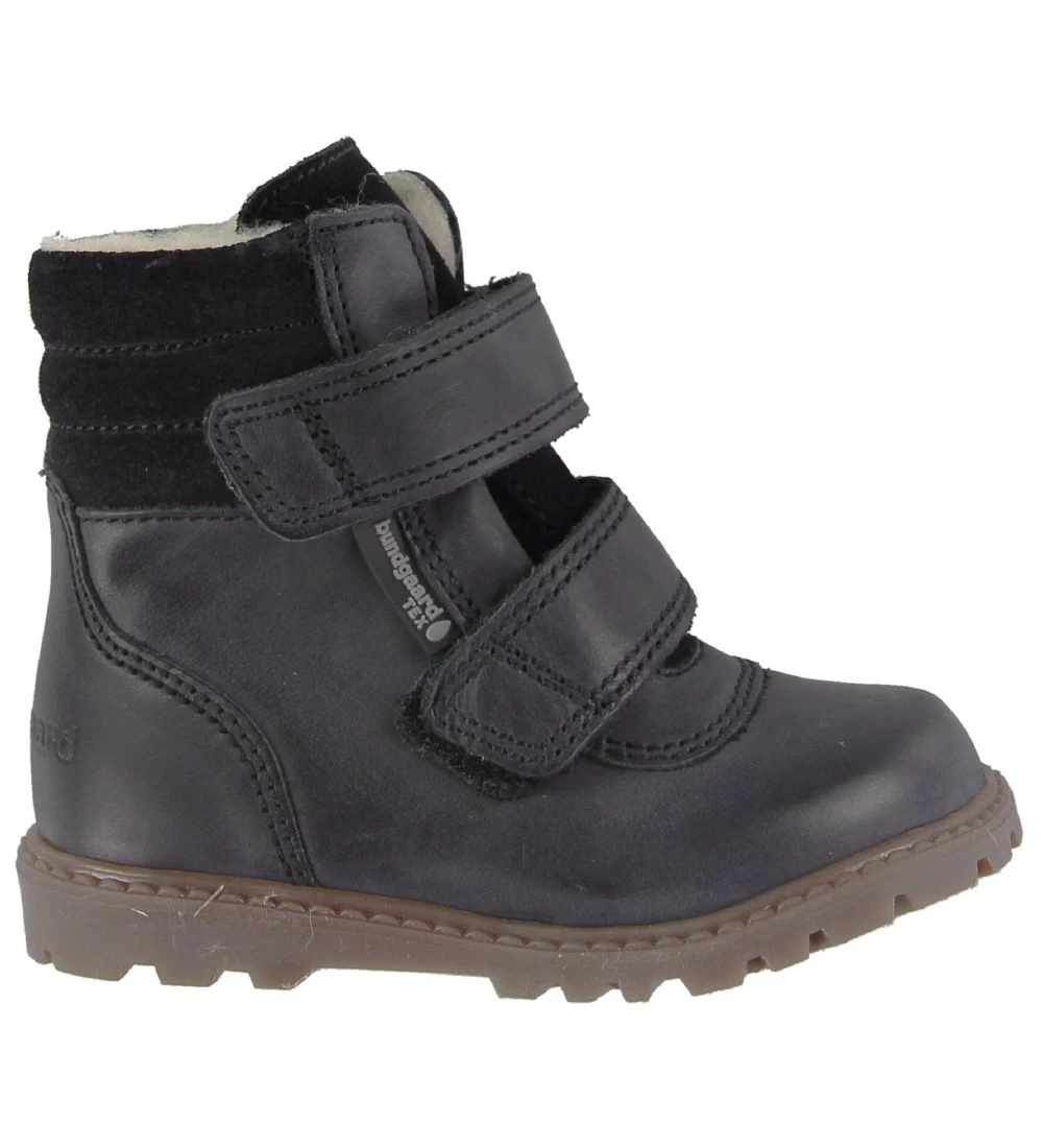 Bundgaard vinterstøvlerne har et højt skaft. De lukkes over vristen med to velcrobånd, som kan klippes til uden at remmene går op. Støvlerne har en fast hælkappe, og indvendigt er de foret med blød, hvid uld. I bunden er der en blød, udtagelig indersål.